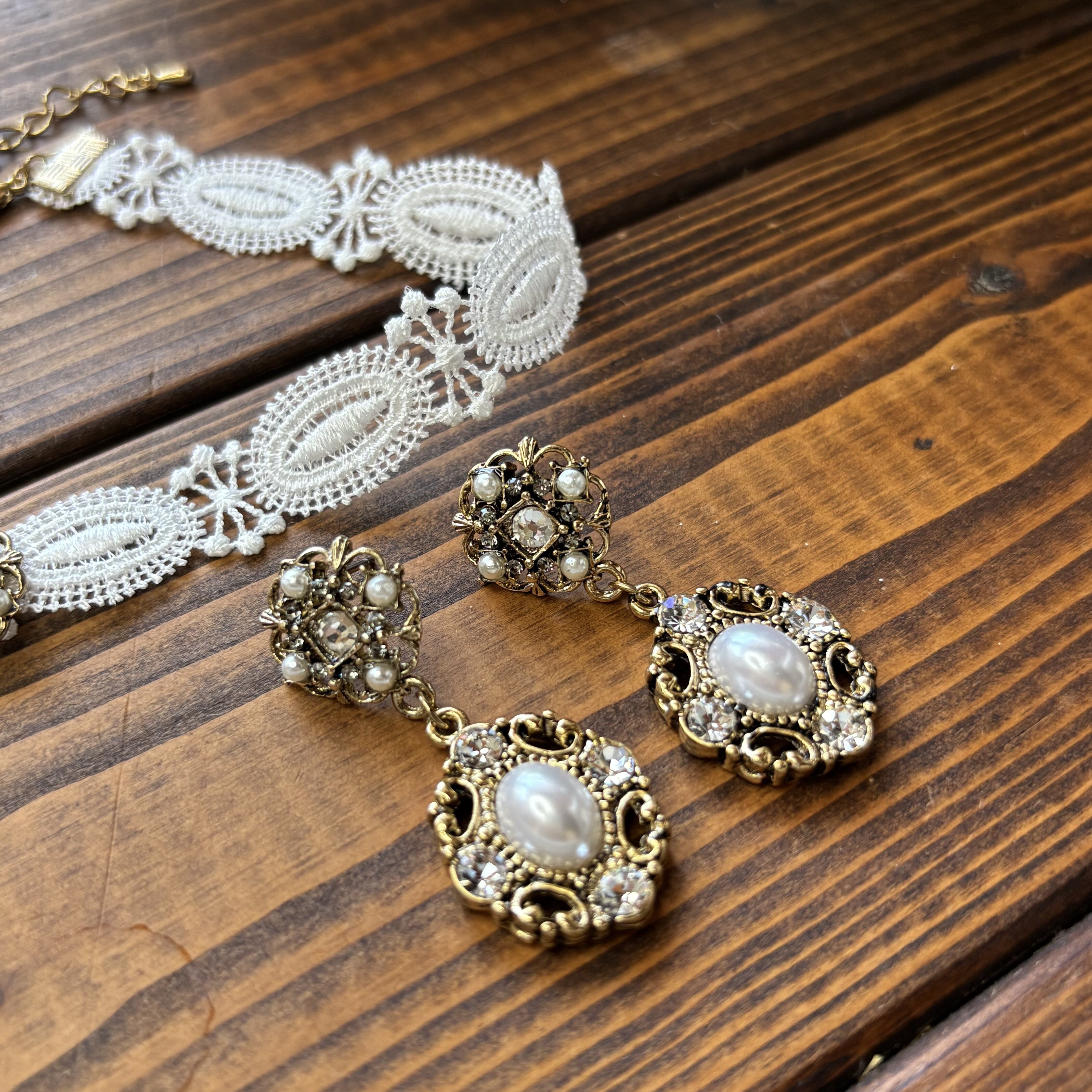 アンティークな魅力が詰まったチョーカーとピアスのセットです。